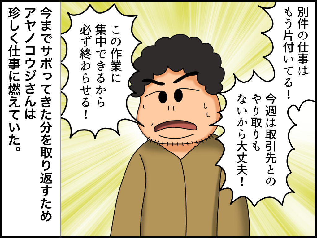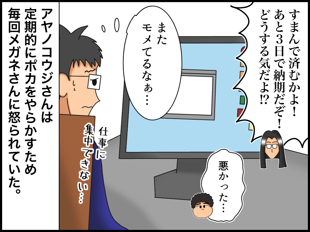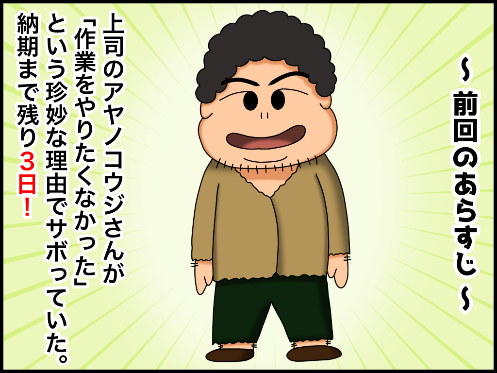 仕事をサボる上司② 2022年08月13日 20:30 とある会社で私の上司だった「アヤノコウジさん」のお話です。※前回の話はこちらから! いかがですか?これが弊社のアヤノコウジです。※続きの話はこちら! ↓↓ブログランキングに参加中です↓↓ よかったら押していってねにほんブログ村絵日記ランキング 「仕事をサボる上司」カテゴリの最新記事 タグ :#進歩しない男#漫画#絵日記 < 前の記事次の記事 > コメント コメントフォーム 名前 コメント 記事の評価 リセット リセット 顔 星 情報を記憶 コメントを投稿する