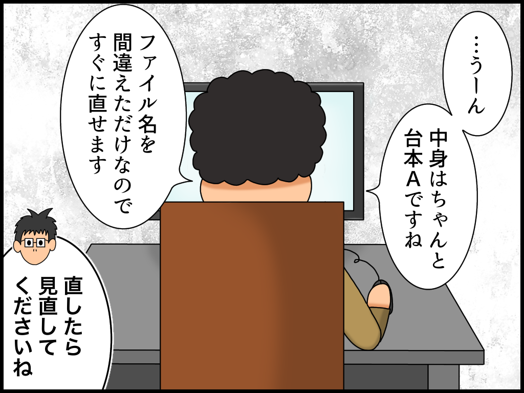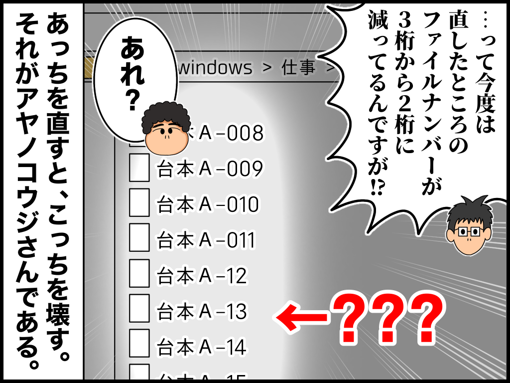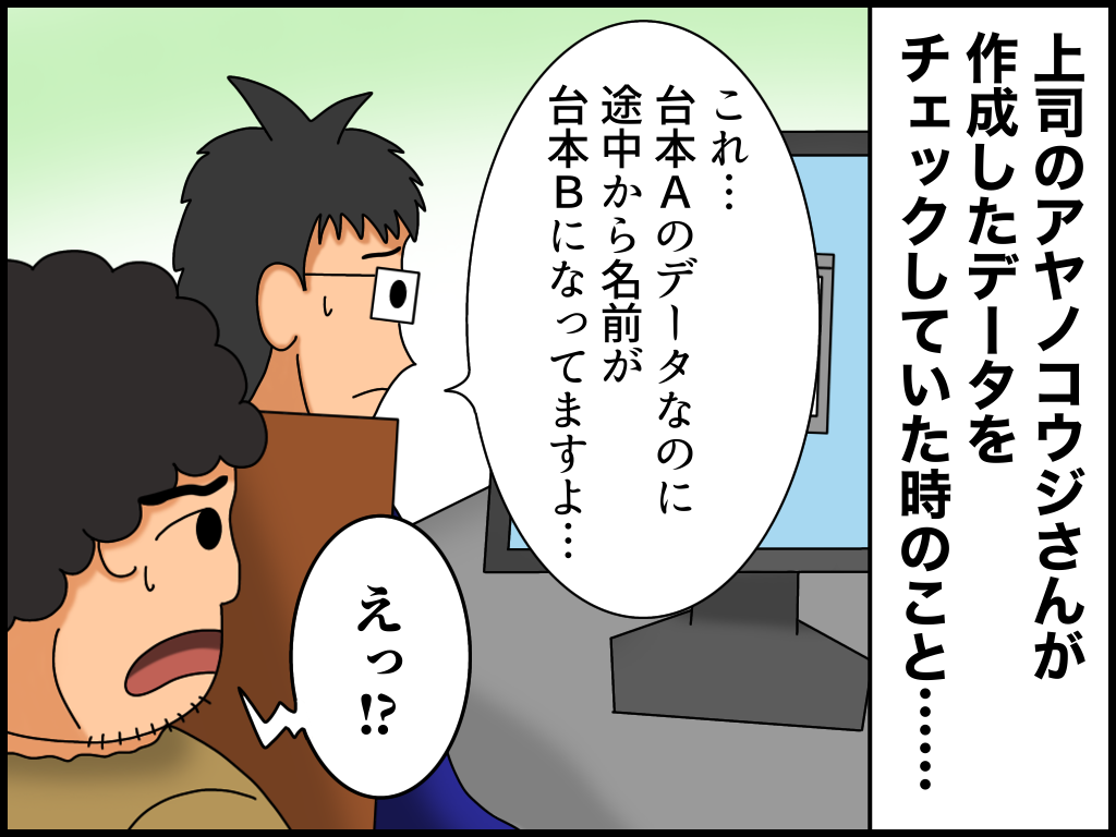 入力ミスが異常に多い上司【1】 2023年03月30日 20:30 今回から「よろず屋編」になります。とある会社で私の上司だった「アヤノコウジさん」のお話です。彼の場合は一回で修正できたら奇跡です。※続きの話はこちら! ↓↓ブログランキングに参加中です↓↓ よかったら押していってねにほんブログ村絵日記ランキング 「よろず屋編」カテゴリの最新記事 タグ :#ミス夫#漫画#絵日記 < 前の記事次の記事 > コメント コメント一覧 (2) 1. 羽生 2023年03月30日 20:39 まるで親の家事を手伝いたがって 余計なことをする 子供みたいですね(;´Д`) 子供ならまだ成長過程での事だから 微笑ましいですが(笑) 0 たっく がしました 2. たっく 2023年03月31日 12:38 >>羽生さん いい年齢の大人ですからねぇ… 笑 0 たっく がしました コメントフォーム 名前 コメント 記事の評価 リセット リセット 顔 星 情報を記憶 コメントを投稿する